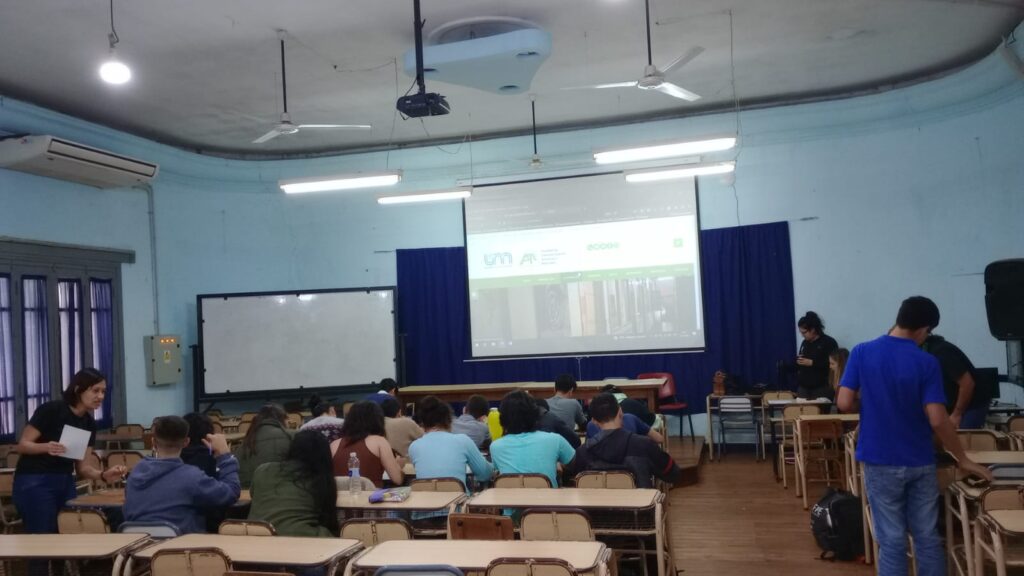 El taller, destinado a los estudiantes de 1er año de las carreras que se dictan en el Módulo Informático de Apóstoles, estuvo a cargo de las docentes Rocío Gómez y Sonia Szilak, acompañadas de tutores pares.